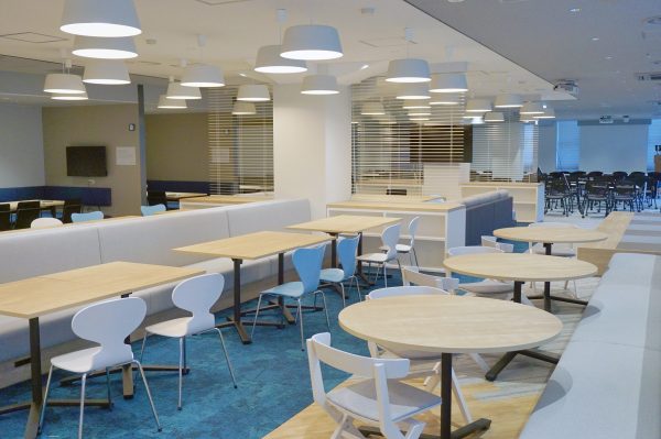 Group work area that can be rearranged to accommodate small to large groups