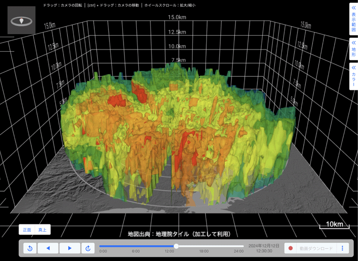 Through the collaboration, the 6 parties will use: Two of NICT’s Multi-Parameter Phased-Array Weather Radars (MP-PAWRs) operated by Osaka University to monitor the weather; NIED’s technology to predict rainfall based on the 3D data from the MP-PAWRs; PFN’s AI-based Cumulon platform to compress, transmit and decode the weather data, RIKEN’s Fugaku supercomputer to forecast precise scales and locations of rain between August 5 – 31 (planned); and MTI’s 3D Amagumo Weather mobile app to notify visitors and staff of possible heavy rain showers above the rate of 30 millimeters per hour.