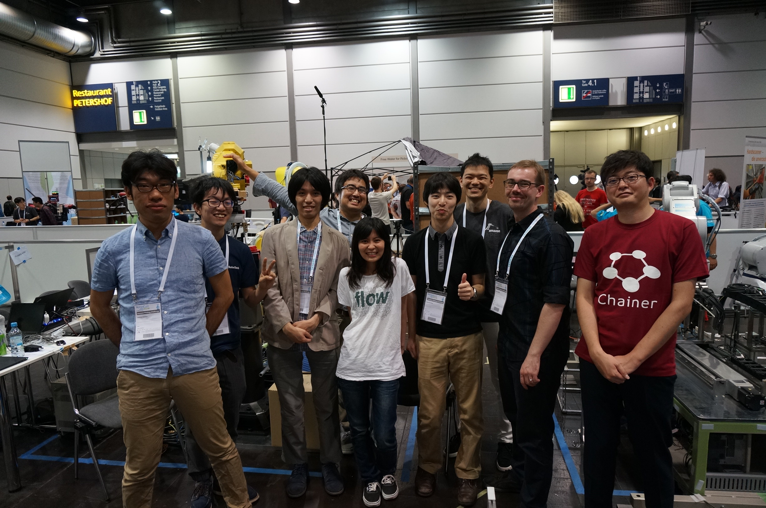 A team of Preferred Networks researchers and engineers participated in the Amazon Picking Challenge from June 29 to July 3, 2016, at Leipzig, Germany, and achieved 2nd place (score tie with 1st place) in the “pick task” and 4th place in the “stow task”.