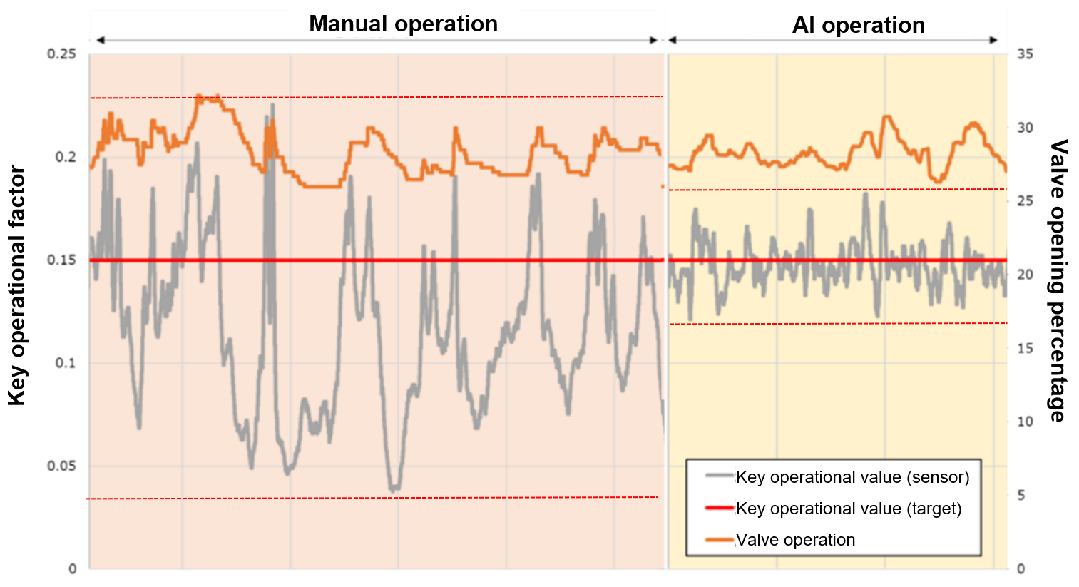 Stability of key operational factor (product property value) achieved by AI-based autonomous plant operation system