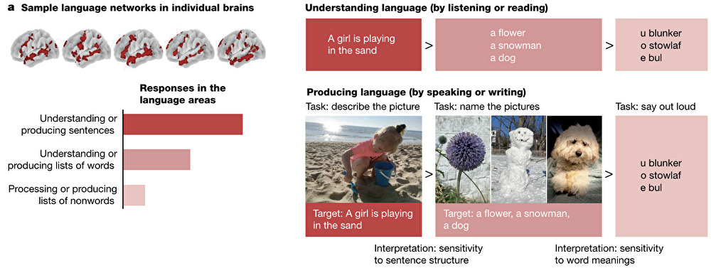 例えばこういう文章「A girl is playing in the sand」とかを読んだ時に、どこが活動するかとか、全然デタラメな文章を読んでどこが活動しないかとを見て、言語を解釈する時にどこが使われているのかっていうのがはっきりわかっている。