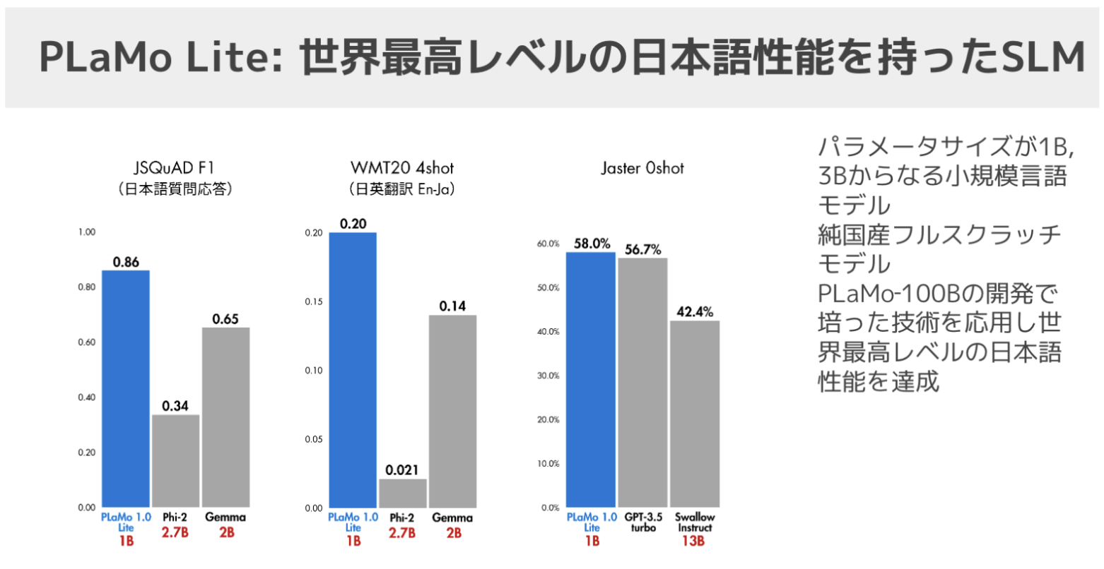 そうした中、実はPLaMo-100Bを開発する中で、小さいモデルをこのタイミングで開発・リリースしていく予定はなかったんですが結果的にできました。