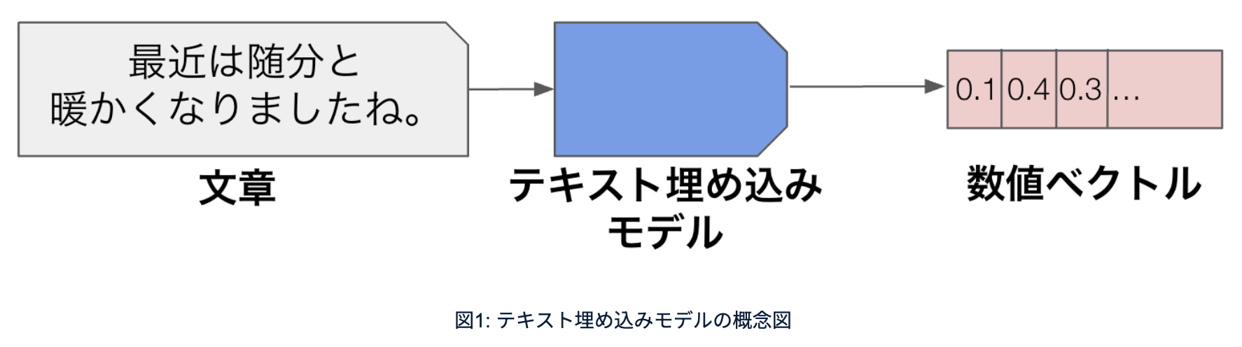 テキスト埋め込みモデルは、文章を数値ベクトル(0.1、0.3、0.4みたいな数字が何十、何百、何千と並んだようなもの)に変換することができるモデルで、これを使うと文章を1回数値ベクトルに変換して、数値ベクトル同士は類似度が計算できるので、「この文章とこの文章は似ています」というのを0.9とか0.3とか、類似度で測れるようになります。