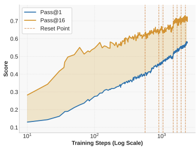 あとは、結局強化学習が何をやってるかと言うと、モデルが複数個の解を出して、その中でたまたま正解にたどり着いたものがあれば、それが「良かったね」ということで、次からそれを選んでくださいっていうアップデートをするので、そのたまたま正解を選べるような出力を出せる多様性が必要になります。