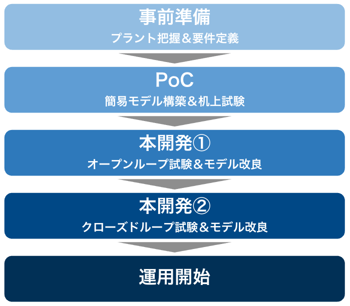 - 実機でのステップ応答採取が不要。従来のAPCが実機ステップ応答採取を基本とするのに対し、PlantPilotではプラントに干渉せずに構築を進められます