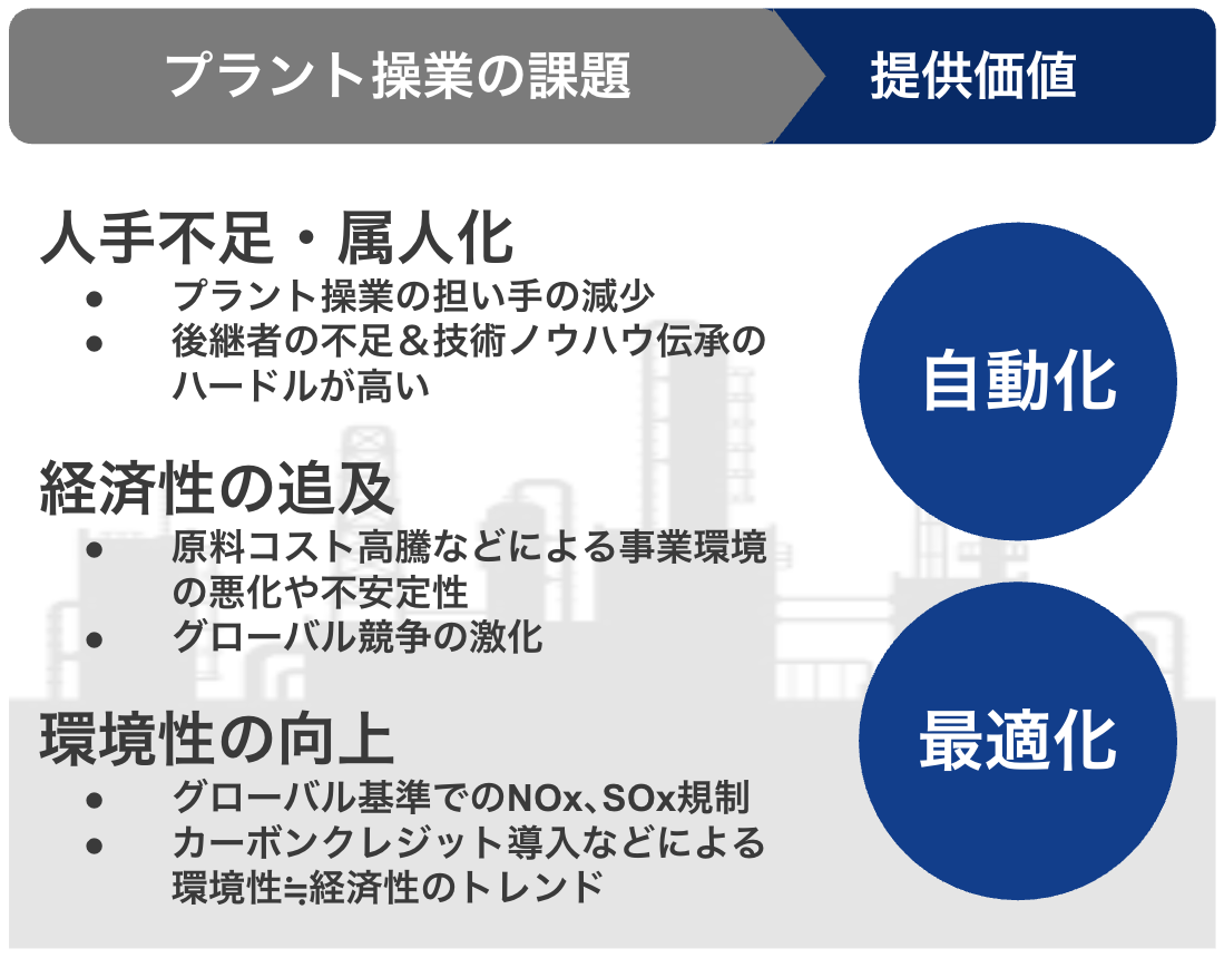 プロセス型製造業の幅広いプラントに適用可能で、効率化と脱属人化に貢献します。