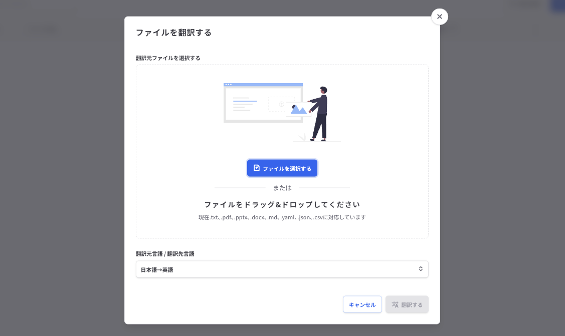 Liteプランのユーザは50MBまでのファイルを5件まで翻訳できます。