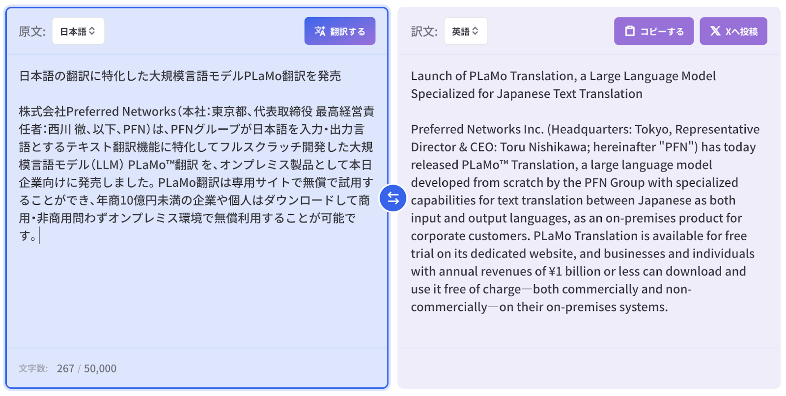 日本語の翻訳に特化したPLaMo翻訳のサブスクリプションサービスを正式リリース
