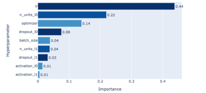 ニューラルネットワークのハイパーパラメータの重要度を評価するOptuna v2.0の画面の例