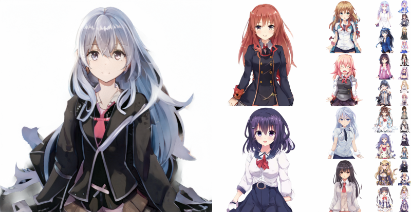 PFNが開発したキャラクター生成プラットフォームCrypko™(クリプコ)は深層学習を利用し、制作者が定義した顔のパーツ、表情、髪の色などに合ったキャラクターのCGを自動生成することができます。これまでCrypkoは顔が生成対象でしたが、上半身までより高い解像度で生成することが可能となりました。