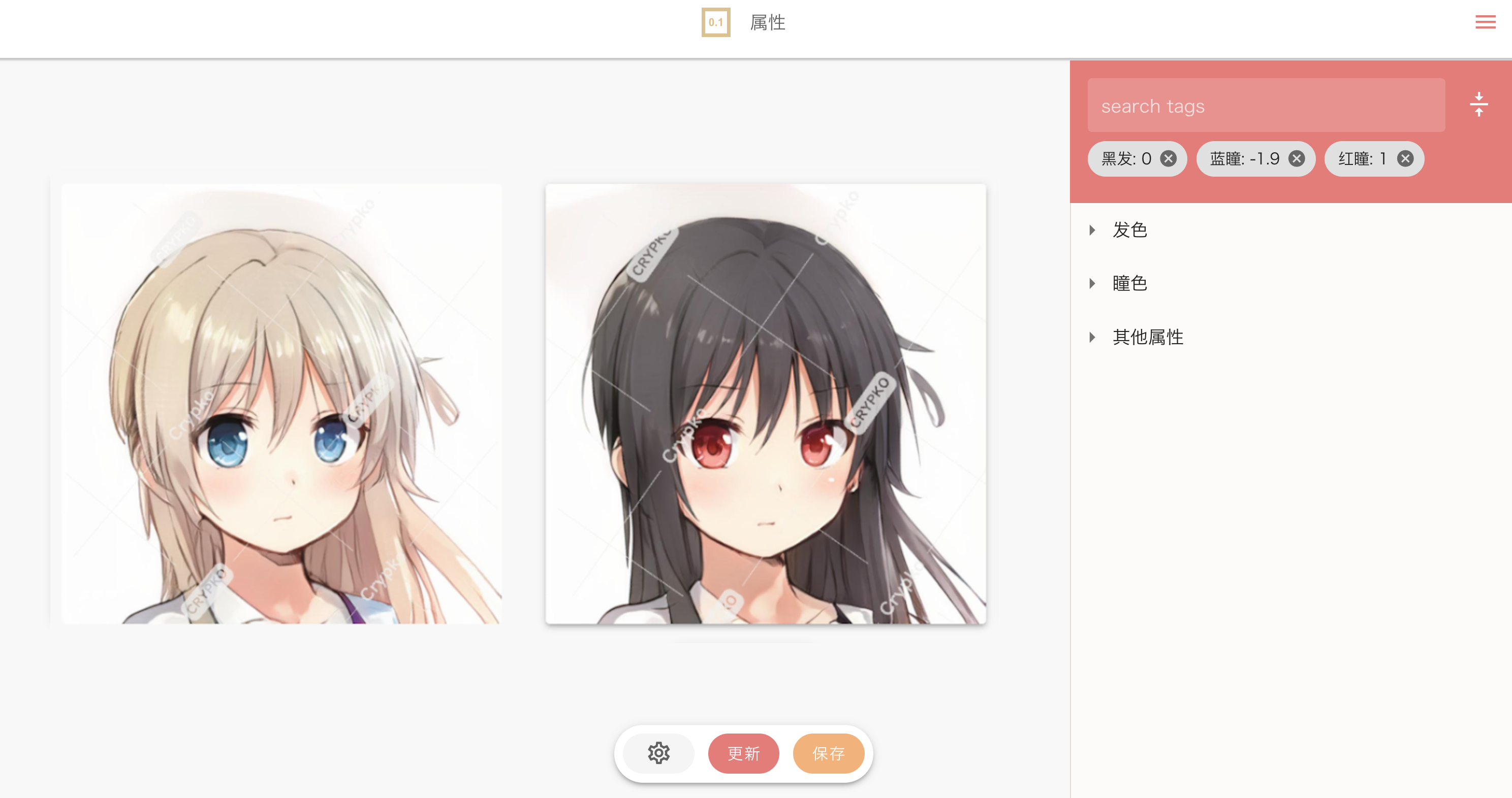 Crypkoは、深層学習を応用した画像生成モデルの1つである「敵対的生成ネットワーク」(generative adversarial networks、GAN)を使ったキャラクター生成プラットフォームで、PFNが2022年4月に日本国内向けに提供開始しました。Crypkoでは所定のアプリ内ポイント(Crypko Point、クリプコポイント)を消費して、人間のイラストレーターが描画したような高品質なキャラクターの生成、融合、属性変更が可能です。また、生成したキャラクターをライブラリに登録・公開したり、他のユーザーのキャラクターをお気に入り登録したりすることで、Crypkoプラットフォーム上の新たな創作コミュニティに参加することができます。