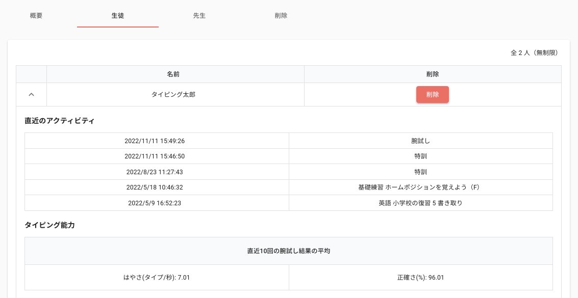 さらに、英語学習モードには、保護者や先生向けの「学習管理機能」を用意しており、専用ページでお子さまの英語学習の進捗状況や、タイピングの速度、正確性を確認することも可能です。