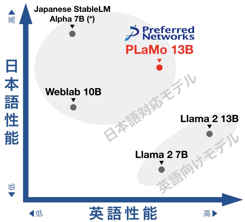 株式会社Preferred Networks(本社:東京都千代田区、代表取締役 最高経営責任者:西川徹、以下、PFN)は、開発した130億パラメータの事前学習済み大規模言語モデル PLaMo™-13B(Preferred Language Model、プラモ)を、研究・商用で利用可能なオープンソースソフトウェア(OSS)ライセンスで本日公開(https://huggingface.co/pfnet/plamo-13b)しました。本モデルは、現在公開されている同規模のパラメータ数の事前学習済み言語モデルと比べ、大規模言語モデルのベンチマーク評価(lm-evaluation-harness)において、日英2言語をあわせた能力で世界トップレベルの高い性能を示しています。