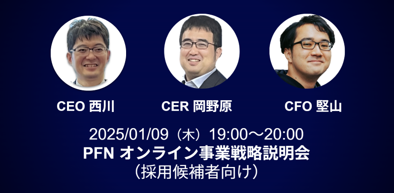今回のオンライン説明会では、エンジニアや事業開発その他幅広い職種において弊社メンバーとして働くことにご関心をお持ちの方に向けて、PFNの事業戦略やその背景など、普段はなかなか知っていただく機会のないトピックについて、経営メンバーから直接お伝えします。