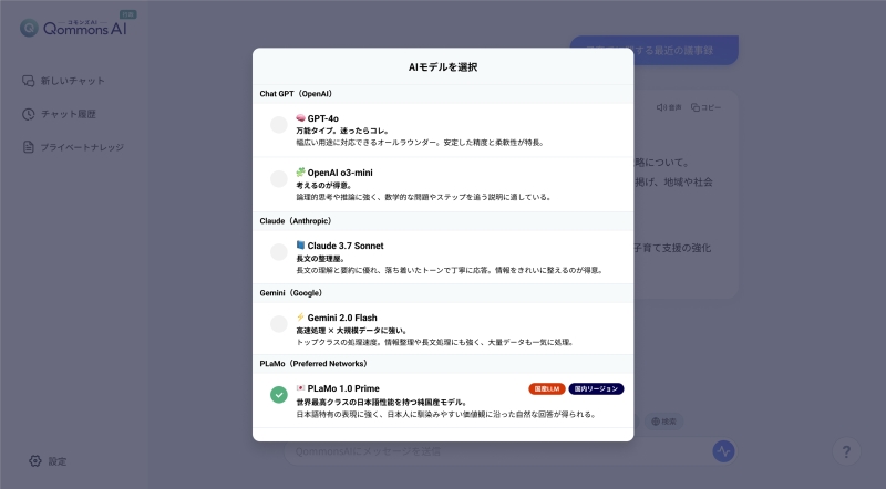 コモンズAIで日本語性能の高いPLaMo Primeを選択可能に