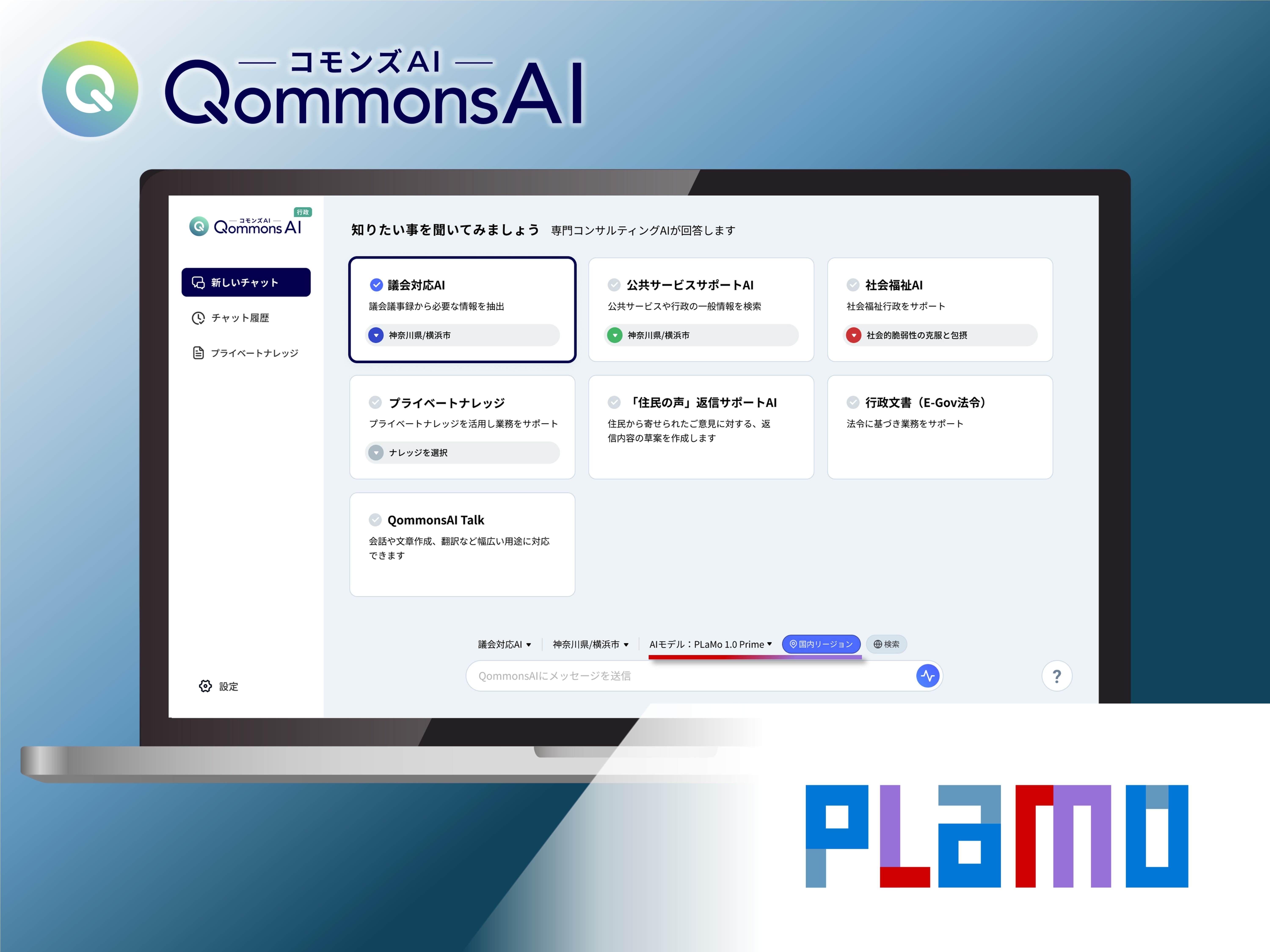 世界最高クラスの日本語性能をもつ国産大規模言語モデルPLaMo PrimeをコモンズAIに標準搭載、約150自治体に提供開始