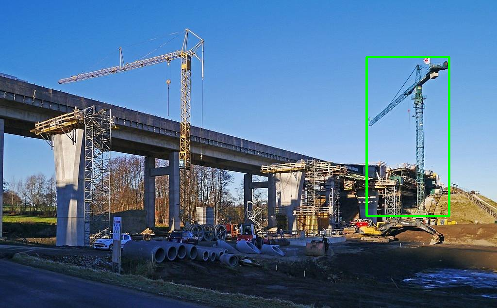 指示文:ショベルカーの近くにあるクレーンを検出して。