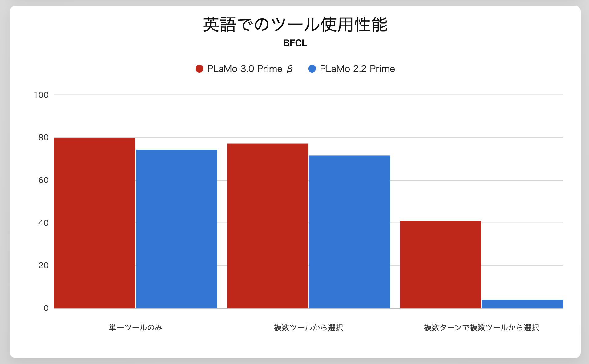 PLaMo 3.0 Prime β版ではReasoning機能の採用により、以下の能力が大幅に向上しています。