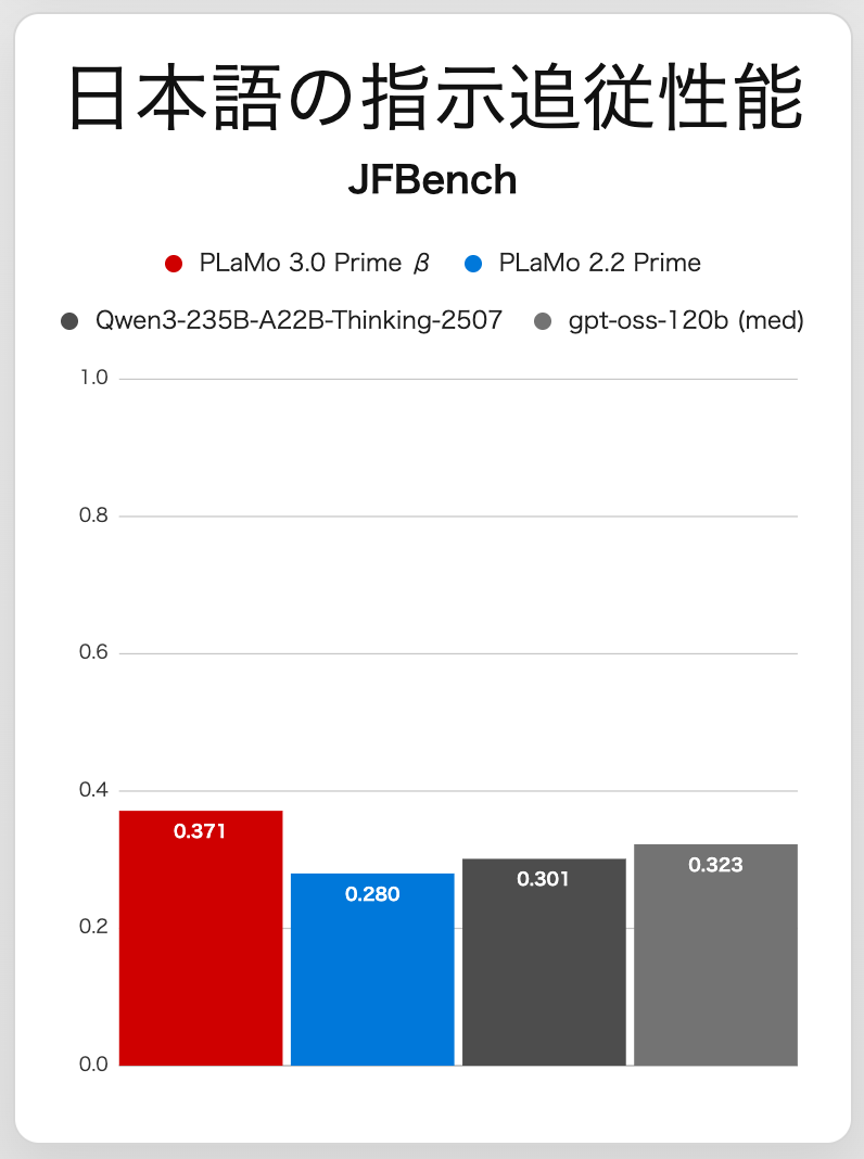 PLaMo 3.0 Prime β版の開発とベンチマークテストの詳細はブログをご覧ください: